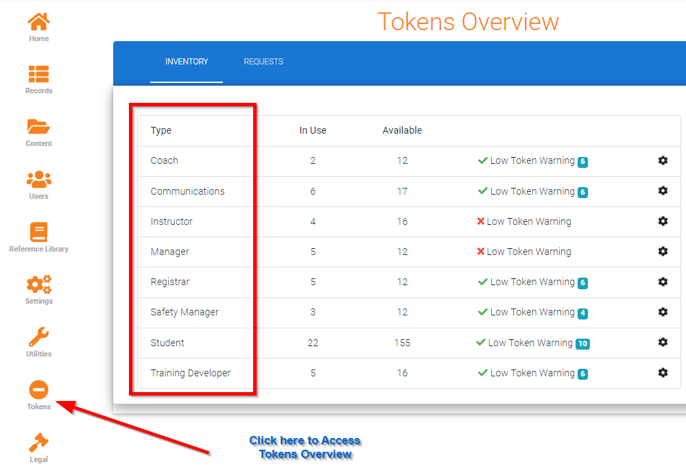 - The Tokens Overview page, it clearly shows how many tokens you have in your system, separated out into those tokens which are currently in use by users and those which are available to assign to users.