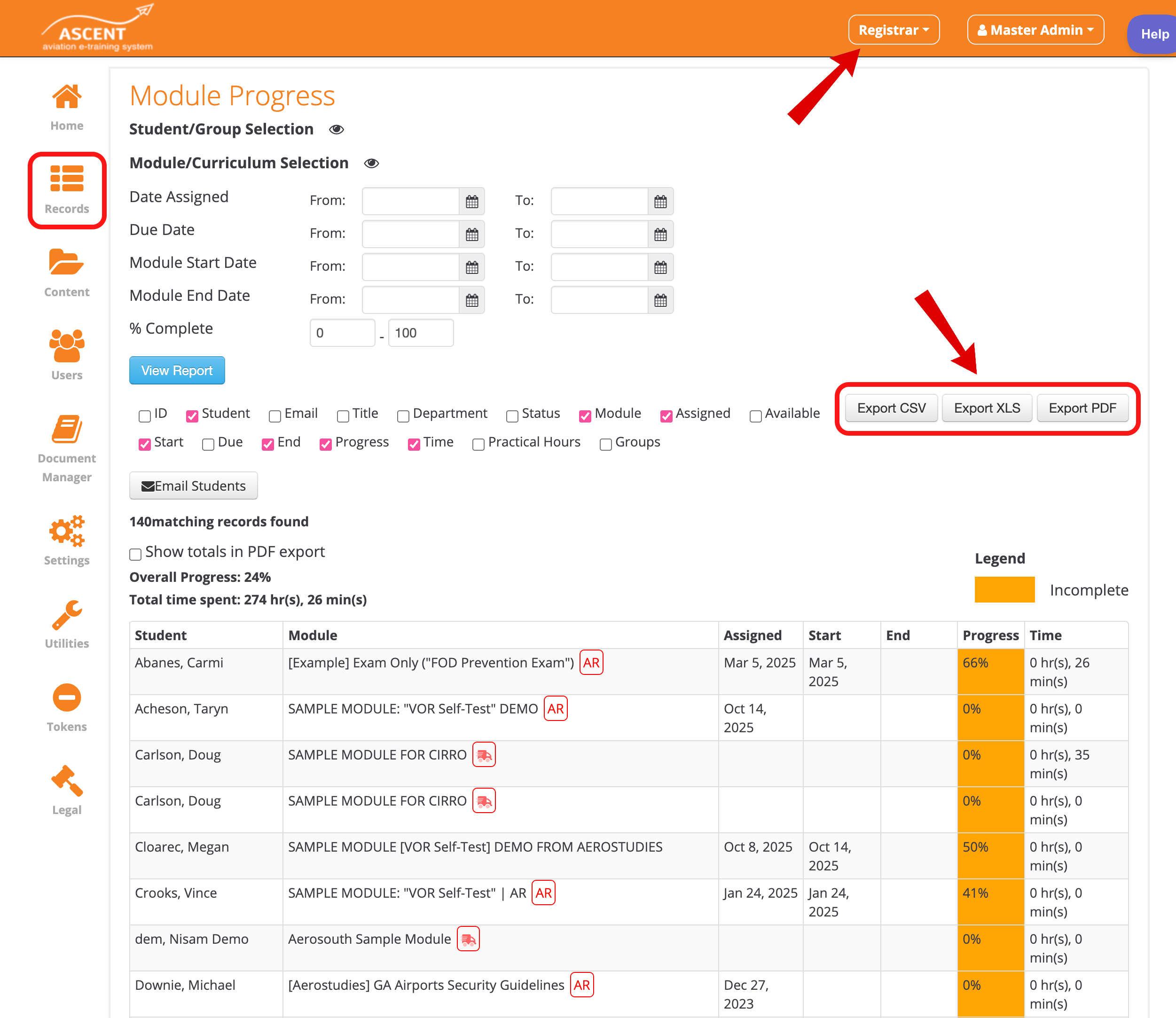 Export/Backup Training Records (Data)