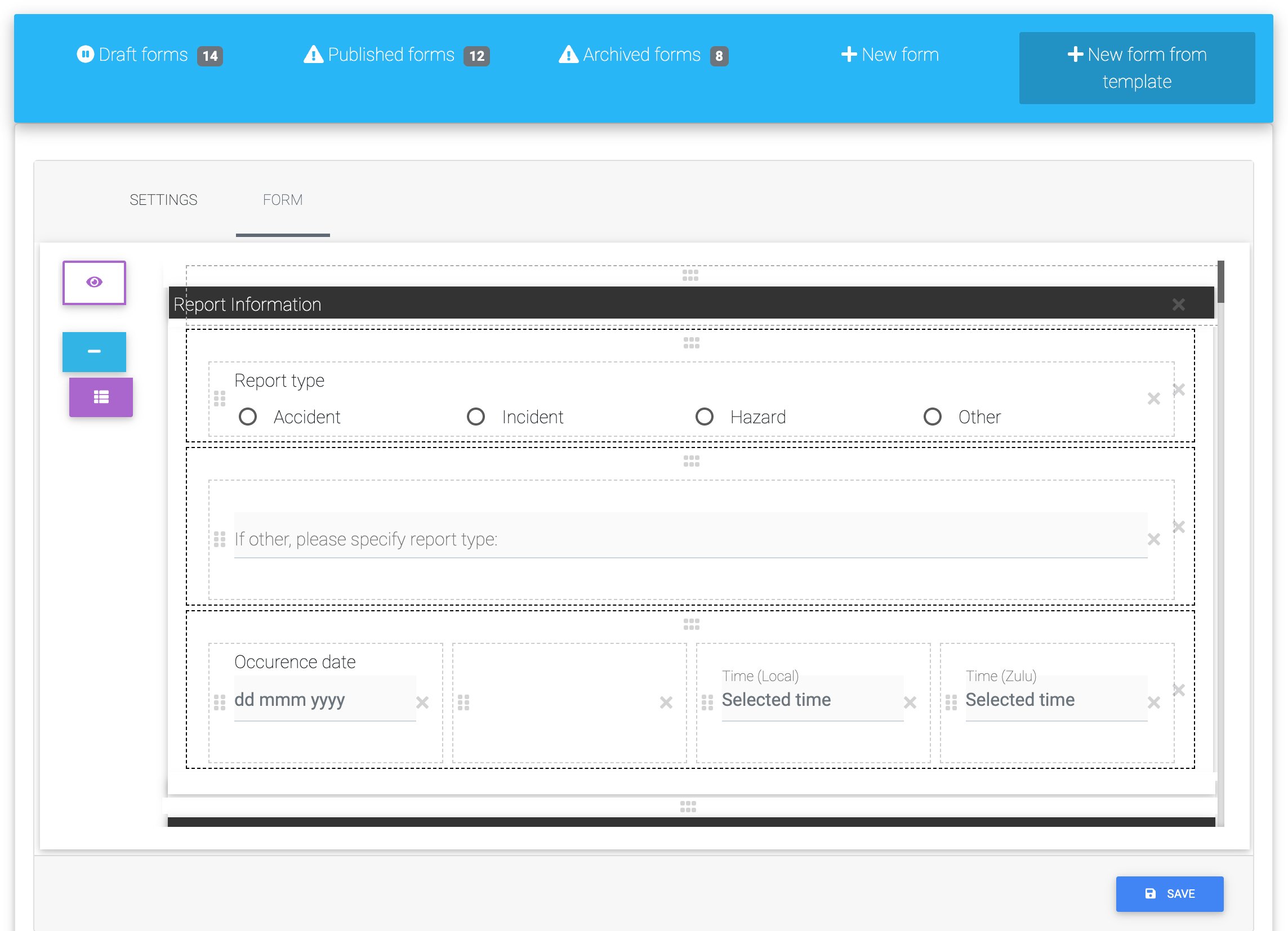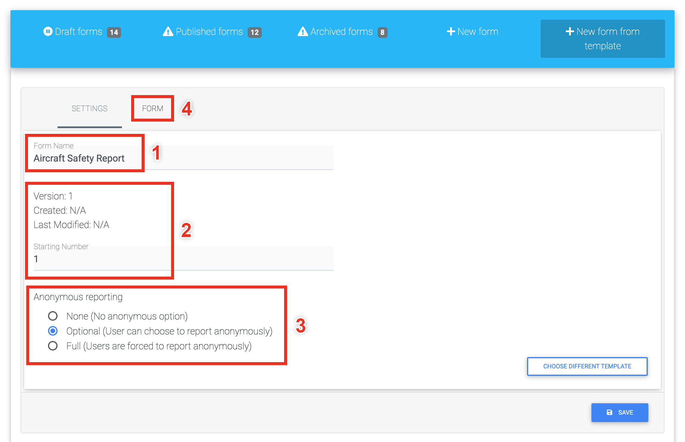 New Safety Report Form from a Template