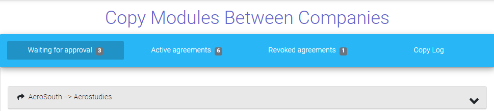 Fill in a request form and submit it. We verify with the recipient company. Then we approve it and you can copy modules to that company forever.