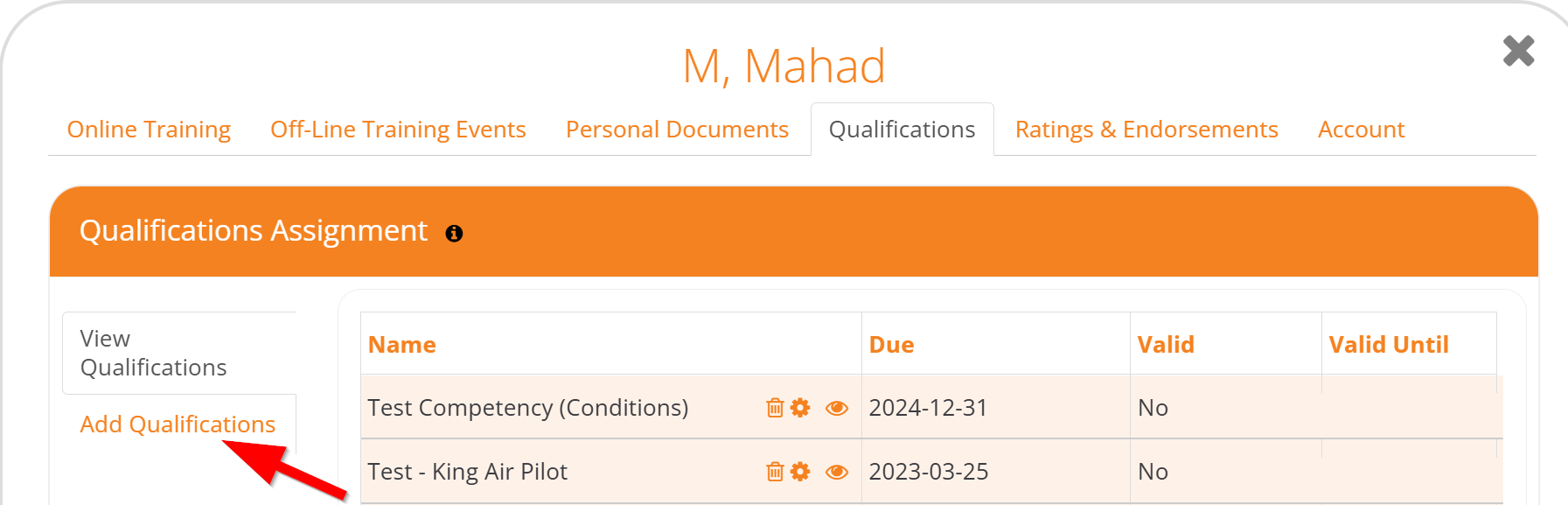 - Select the Qualifications tab, and then click the "Add qualifications" menu item on the left.