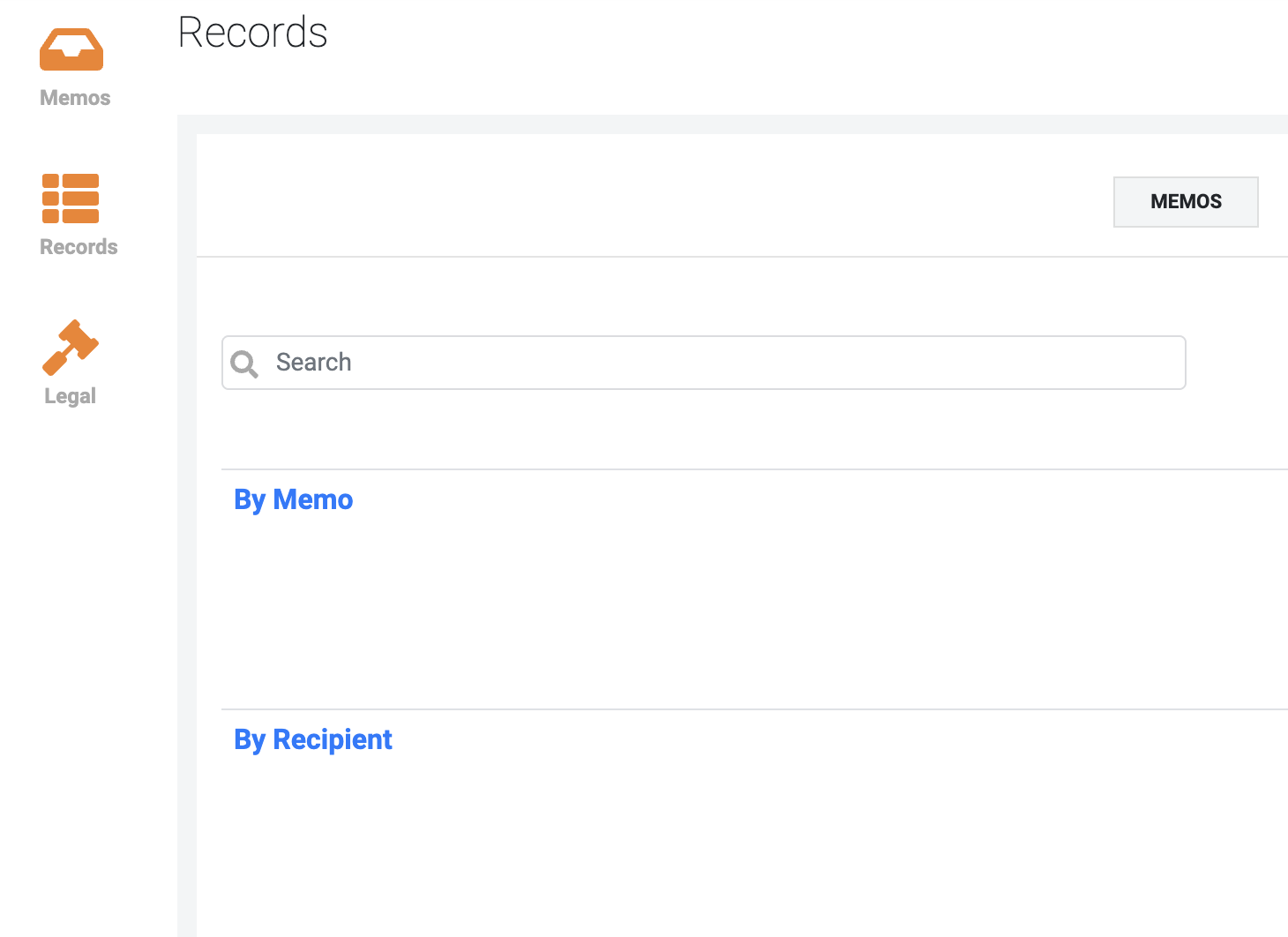 Users with the Communications role can access Memo records. These are located on the Memo homepage in the left-hand panel under 'Records'.